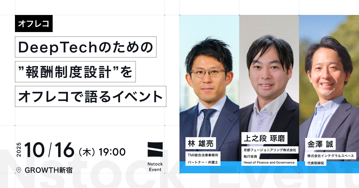 そこで本イベントでは、グローバルで戦うためのディープテックスタートアップの”報酬制度設計”をテーマとして、有識者3名のみなさまにオフレコでお話をいただきます。