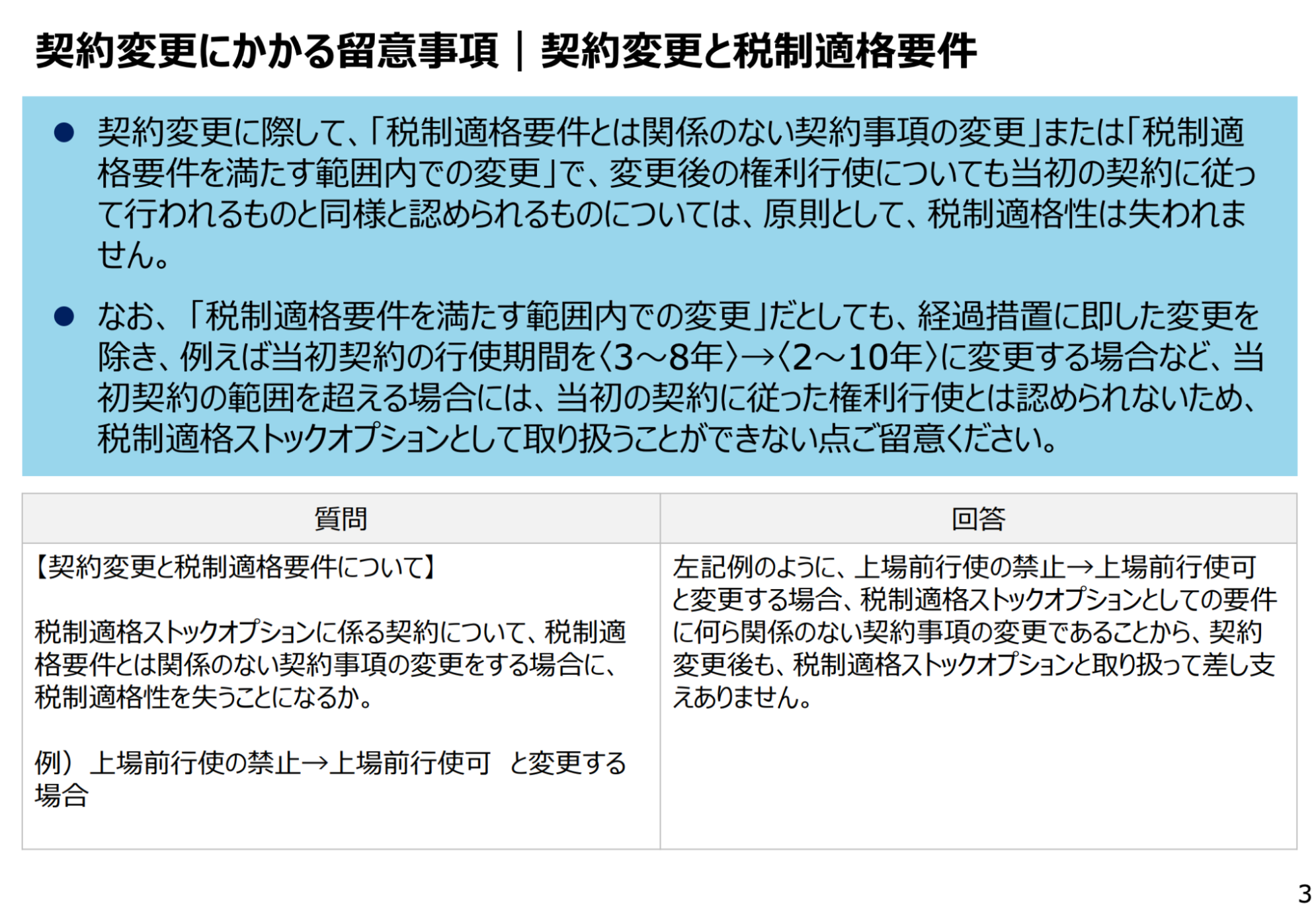 ここで一つ朗報があります。税制適格SOに関する新たなセーフ・ハーバールールが出た際に経産省から発表された資料の中で行使条件の修正についての説明があり、これによると一定の条件内であれば既発行分のSOについても修正が可能とされています。