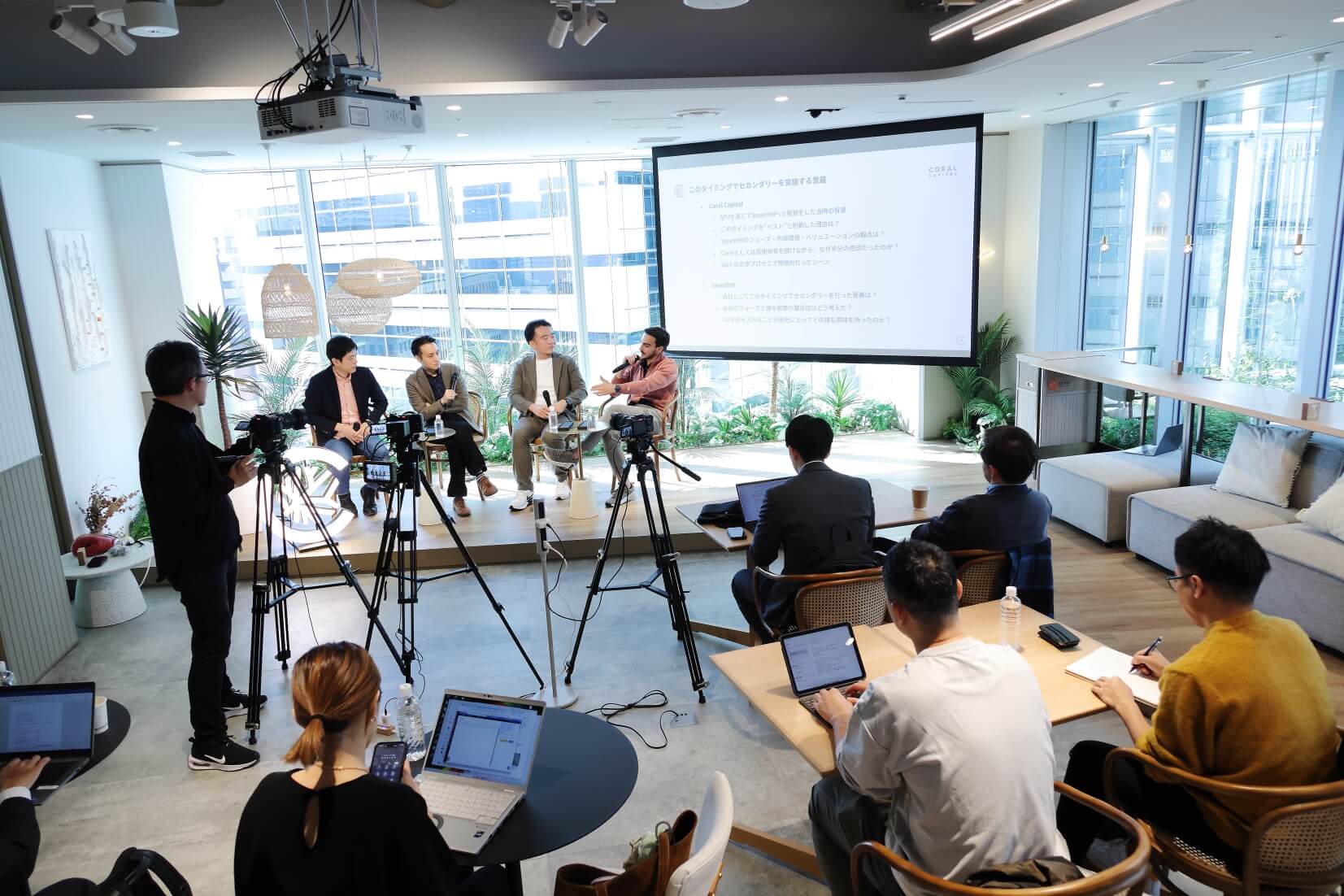 この発表にあわせて開催されたCoral School「SmartHRとNstockに聞くセカンダリー取引のリアル」の収録では、Coral Capitalの創業パートナーCEOのJames RineyさんとHead of DPIである石川亮太朗さん、SmartHRのCFOである森雄志さん、Nstock代表でSmartHRの創業者でもある宮田昇始が登壇。これまでを振り返りつつ、GAとのセカンダリー取引の舞台裏を明かしました。今回のStock Journalでは、当日の内容をお届けします。