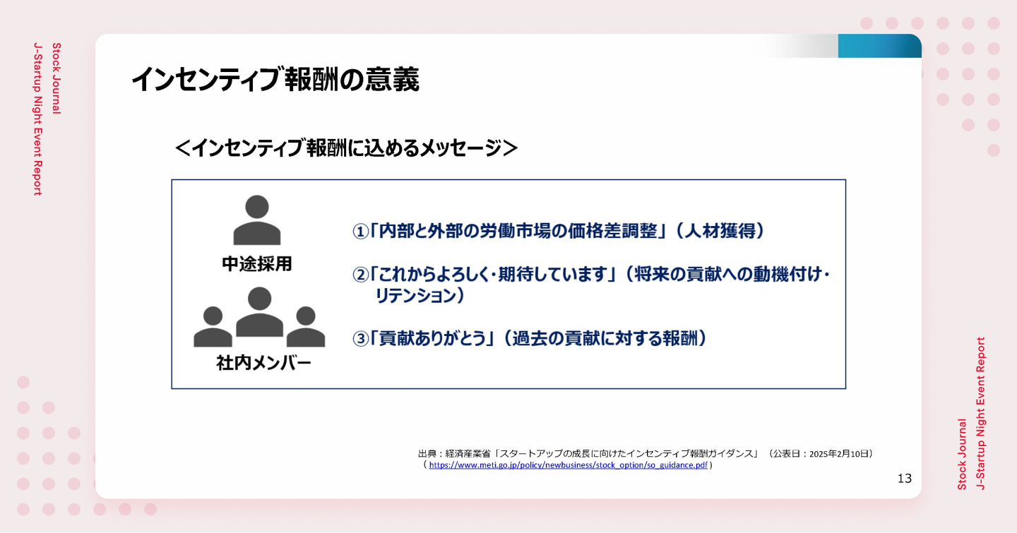 ※本記事は2025年3月13日に開催されたJ-Startup Nightイベント「スタートアップの成長を支えるインセンティブ報酬のいま」の内容を元に構成しています。経済産業省が2025年2月に公開した「スタートアップの成長に向けたインセンティブ報酬ガイダンス」の詳細については、経済産業省のウェブサイトをご覧ください。