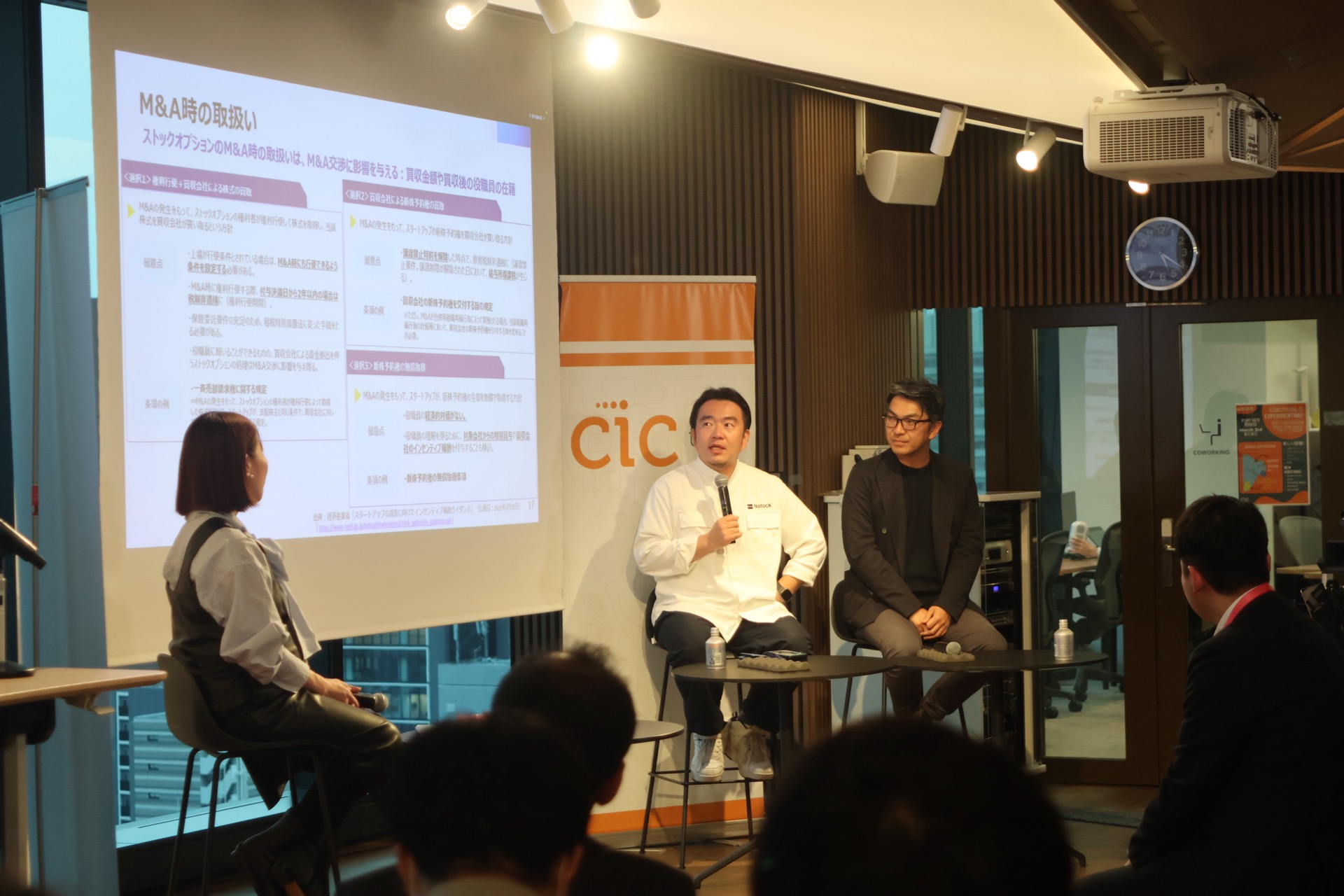 2025年3月13日、CIC Tokyoを会場にJ-Startup Nightが開催され、「スタートアップの成長を支えるインセンティブ報酬のいま」と題するセッションが実施されました。スタートアップにとって重要なストックオプション(SO)設計に関するセッションでは、Nstock株式会社の代表取締役CEO 宮田昇始、シニフィアン株式会社の共同代表 村上誠典さん、法律事務所ZeLoの弁護士で今回モデレーターを務めた南知果さんの3名が登壇しました。