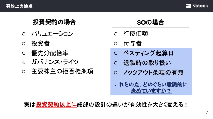 小林:投資契約以上に、設計の違いがSOの有効性を大きく変えるということを認識しといたほうが良い、と私は常々思っています。