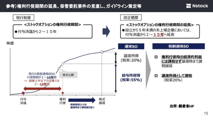 野瀬:権利行使期間の延長については、現在付与決議から2〜10年までとなっているところが、2〜15年に延長される予定です。KIQSも改正され次第アップデートを行います。