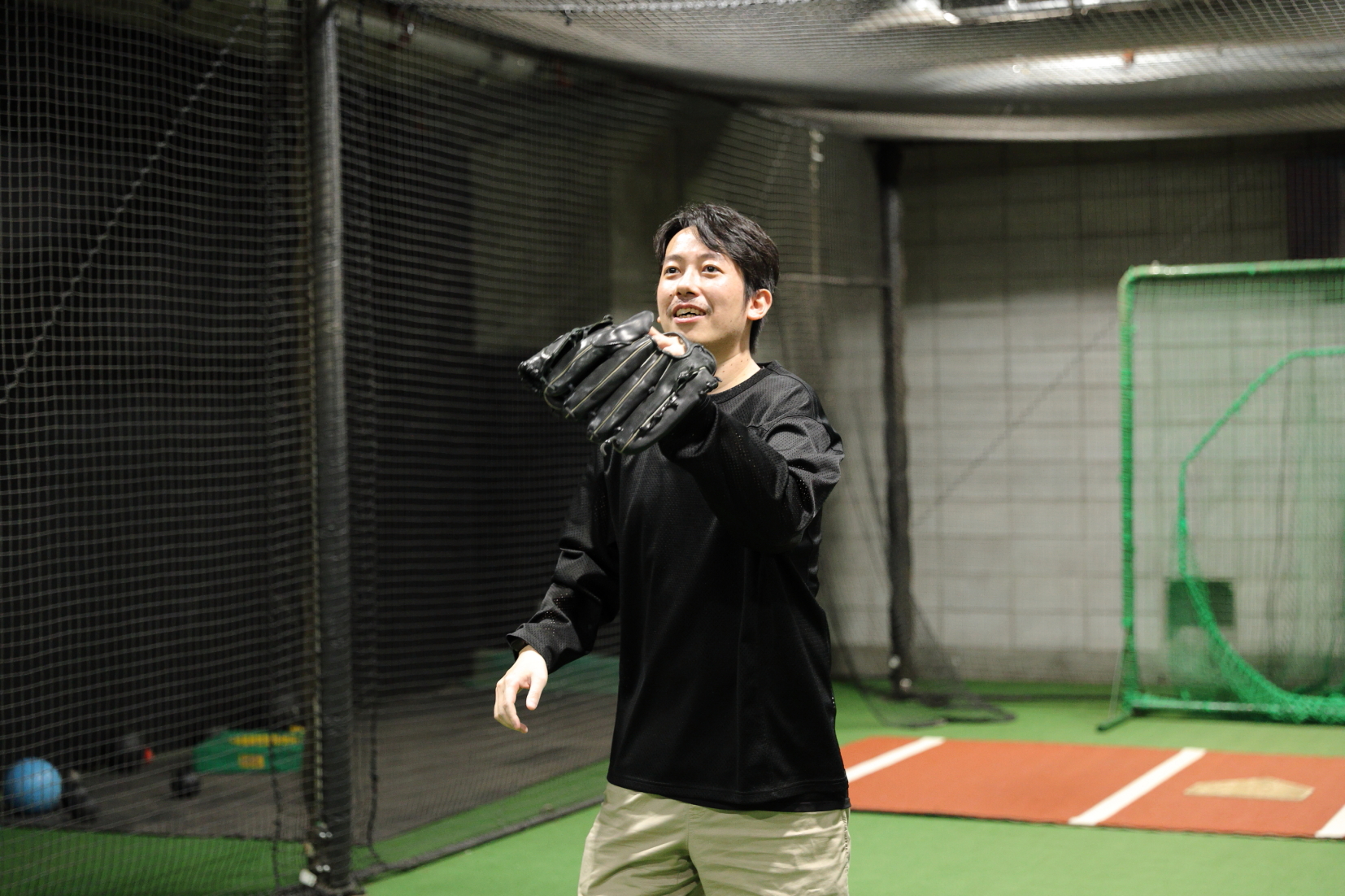宮田 昇始(以下、宮田):今日の取材で初めて外苑前野球ジムへ来たのですが、想像以上に本格的なジムで驚いています。野球場みたいなマウンドだ……。取材前にキャッチボールもさせてもらったのですが、これは気持ちがいいですね!