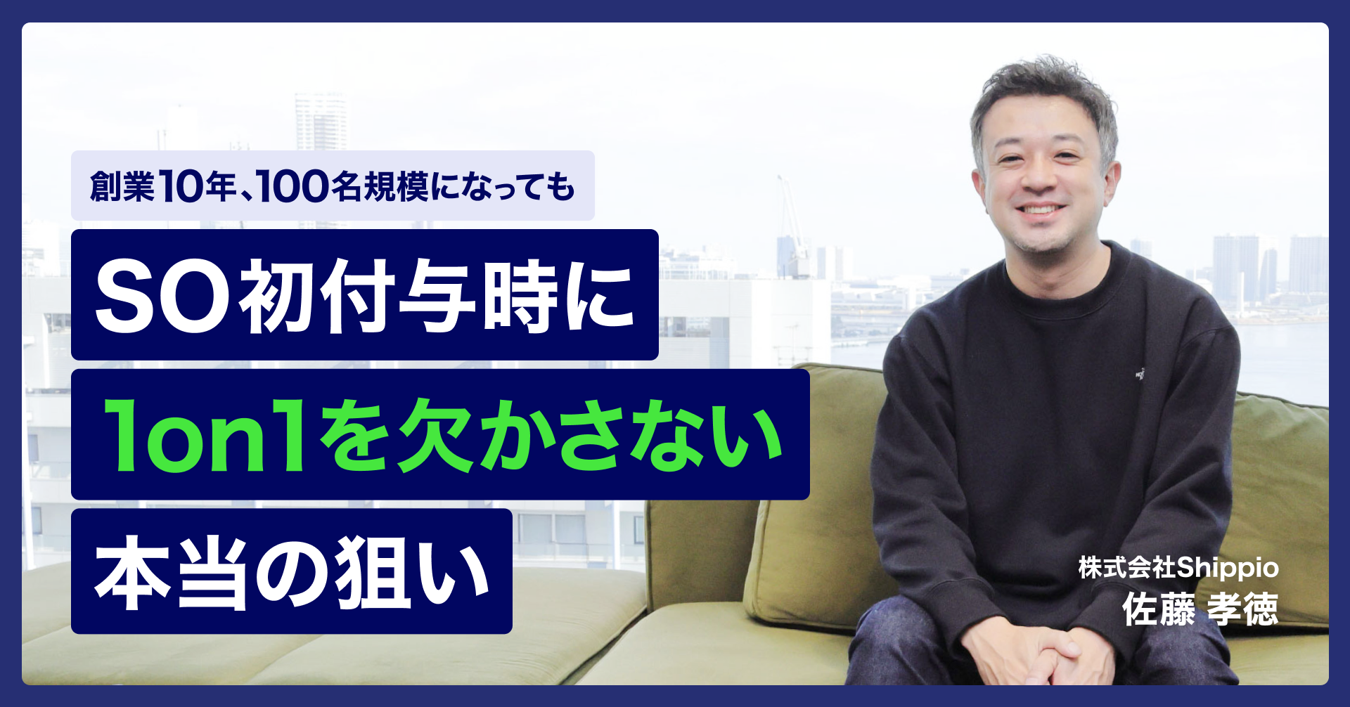 創業10年、100名規模になっても──Shippio代表・佐藤さんがストックオプション初付与時に1on1を欠かさない本当の狙い