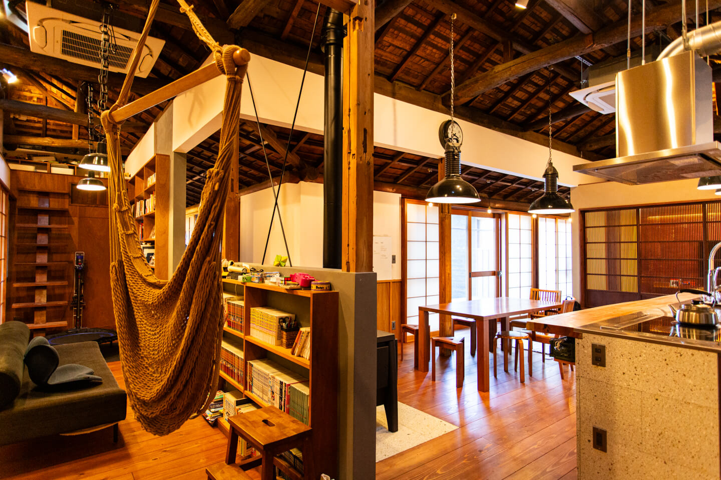 木々に囲まれ、夏でも涼しい風が吹き抜ける古民家。焚き火やバーベキューを楽しめる広い庭。そして屋内にはボルダリングスペースも!大人の夢が詰め込まれたようなこの家は、前職のメルカリで得たSO無しでは実現しなかったと言います。